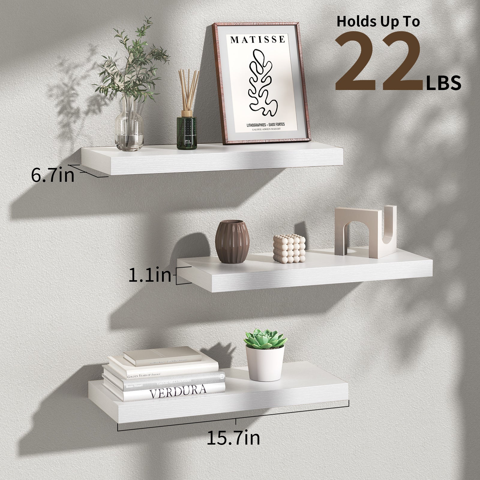 Ophanie 16 in Wood Floating Shelves, White, Set of 3
