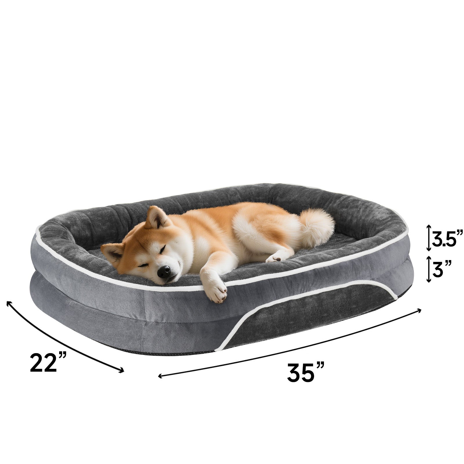 Ophanie Luxury Sofa Orthopedic Dog Bed For Large Dogs, Removable, Machine Washable Plush Cover, and Non-Slip Bottom with Four-Sided Bolster Cushion, Gray (35"x28"x6")